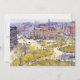 Union Square en primavera (1896) de Childe Hassam es una pintura de paisaje de arte impresionista vintage. Una vista aérea de Union Square en la ciudad de Nueva York. En primer plano está el techo a dos aguas de la pequeña estación de comodidad pública dentro del parque. En el centro hay parches de césped verde, jardines y céspedes con árboles que comienzan a florecer. A través de Union Square están los edificios en la calle 14.