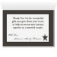 Estas adorables tarjetas de agradecimiento FOLDED son perfectas para agradecer a sus invitados por los regalos que trajeron, o incluso por su compañía en su evento. Ideal para una ducha o una fiesta de cumpleaños. Estos son completamente personalizables y el poema puede ser eliminado completamente simplemente borrando el texto para dejar espacio para un mensaje personal escrito a mano, o puedes personalizar con tu propio poema o texto. Estos se imprimen sobre la cubierta de 120 lb de peso ultrarrepesado (material de tarjeta). Cada tarjeta viene con un sobre blanco. Tenemos una línea entera dedicada a este diseño aquí en el zazzle store bajo la pestaña * Diseño Colecciones del menú para incluir invitaciones (5x7), Etiquetas de retorno, Etiquetas de correo, Sellos para sobres, estampillas de rehenes, Tartas de copas, Envolturas de botellas de agua, Hershey's 1.55 oz. Envolturas para barra grande, Pegatinas en miniatura de Hershey, Envolturas para bolsitas de palomitas de microondas, Tarjetas para lugares escribibles, Toppers para bolsitas de goody, Tarjetas de agradecimiento FLAT (4x5), Tarjetas de agradecimiento FOLDED (4x5), Etiquetas de favoritos, Tarjetas de menú, libros de papel, Tapas de ligas, Tarjeta de bingo Marcadores, Hojas de llamadas con tarjeta de bingo, tarjetas de consejo para escritura (4x5), etc.