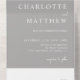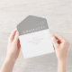 Con una caligrafía elegante, esta invitación a una boda blanca y plateada se puede personalizar fácilmente con toda la información sobre su día de boda especial.