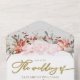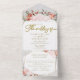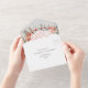 Experimente la magia de una boda de invierno con nuestras invitaciones todo en uno. La elegancia dorada se combina a la perfección con una rosa rosa rosa, acentos de puntiaguería y bayas rojas en un marco geométrico impresionante. Además, la tarjeta postal RSVP es el toque perfecto para su evento inolvidable. ❄️ 💍 💌