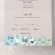 Un bonito diseño floral con flores azules y blancas, un ramo de acuarela en una sola invitación a la boda. Sus huéspedes pueden sacar la tarjeta RSVP y enviarla de vuelta. Todos los campos son editables.