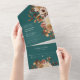 Boda floral verde azulado todo en una sola invitación. Simplifique su papelería boda con esta invitación completa y tarjeta RSVP, combinando comodidad con un toque de encanto de temporada. Este diseño, doblado en un formato cohesivo, presenta ricos tonos verde azulados y flores de otoño pintadas a mano (hojas de naranja y terracota quemadas, dahlias beige y rosas de cobalto) tanto en el frente como en el interior. Los huéspedes pueden desgarrar fácilmente la sección RSVP y devolverla, mientras que el diseño garantiza que cada detalle refleja su tema de otoño. Personalízalo para una experiencia hermosa y optimizada de principio a fin.