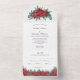 Una hermosa poinsettia floral roja y verde todo en una sola invitación a la boda. Sus huéspedes pueden sacar la tarjeta RSVP y enviarla de vuelta. Todos los campos son editables. Genial para la novia consciente del presupuesto. Éstas hacen hermosas invitaciones de boda invernal/Navidades.