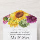 Rústico boho girasoles y dahlias invitación a la boda en tonos de ciruela borgoña y colores solares.