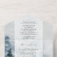 Una versión mejorada de la triple invitación ahora con una sección de desgarro de rsvp. Podrá disfrutar de un ilustracion acuático de montañas y pinos, combinado con una elegante tipografía caligráfica, que ofrece un aspecto de moda. Esta invitación sustentable "todo en uno" te ahorraría dinero, no hay necesidad de incluir sobres RSVP, tus invitados desgarrarán el último panel y te lo enviarán de vuelta como postal. **Esta invitación fue diseñada para entrar en sobres para proteger tu inversión y para tener realmente un todo en uno incluyendo invitación, recepción más información de detalles, y rsvp. Si necesitas algún cambio, estoy encantado de ayudar ***Servicio de direccionamiento digital pdf disponible bajo petición. (para la impresión DIY). Correo electrónico en info@the52edit.com para más información