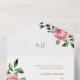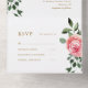 rosas rosas rosas bonitos y vegetación todo en una invitación a la boda con un monograma clásico en tipografía de color oro.