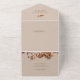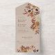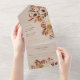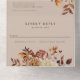 Topo | Cae deja Boda en una sola invitación. Esta elegante invitación a la boda se lleva a cabo todo en uno, con hojas de naranja, cobre y terracota quemadas a mano, dahlias crema y beige y hermosos rosas de color rojizo sobre un fondo de taupe. El RSVP está incluido en esta elegante invitación. Buscar elementos coincidentes en la colección Taupe Autumn Romance.