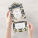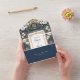 Optimice su planificación boda con esta sofisticada invitación de bodas todo en uno con un impresionante diseño inspirado en el Art Nouveau azul marino y oro. Decorada con delicadas flores blancas y detalles dorados intrincados, esta invitación combina elegancia con practicidad. Esta invitación incluye una tarjeta postal RSVP para desgarradores que permite a los huéspedes responder sin problemas mientras ahorran en dos sobres extra por invitación. Es perfecto para bodas formales o de temática vintage y para parejas que quieren elegancia con funcionalidad conveniente. Si necesitas plantillas de día de descanso adicionales que coincidan, por favor, siéntete libre de enviarme un mensaje - ¡estaré más que contento de ver lo que puedo hacer por ti!