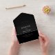 Entrar en el reino del romance con la "Elegante invitación a una boda negra en uno", una creación hecha a medida diseñada para resonar con los corazones de las parejas que se embarcan en el viaje de una vida. Esta invitación es más que sólo una pieza de papel; es una sinfonía de emociones y una encarnación visual de tu única historia de amor. Elementos de diseño: Envuelve tu amor en el profundo encanto de una elegante boda con la "Elegante invitación a la boda todo en uno de los negros". Con el telón de fondo de un lienzo negro rico, tus nombres personalizados ocupan el centro del escenario, convirtiéndose en un testamento visual de la unión de dos almas. La simple pero expresiva tipografía captura las profundas emociones de tu amor, marcando el tono para una celebración llena de calor y sentimiento. Minimalismo casual: en el arte de la simplicidad, descubre el poder de evocar emociones profundas. La "Elegant Black All-in-One Wedding Invitation" abarca el minimalismo informal, permitiendo que tu historia de amor brillara sin distracciones innecesarias. Este diseño fomenta una conexión íntima, que refleja tu deseo de una celebración que es genuinamente tuya. Elegancia intemporal: sumergirse en la elegancia atemporal de una ceremonia de moda en blanco y negro. El monograma, un símbolo de su unidad única, añade un toque regular a la invitación. Esta elección de diseño garantiza que la celebración de su boda no sea sólo un evento sino una experiencia atemporal, marcada por la sofisticación y la gracia duraderas. Comodidad de Sello y Envío: Más allá de su encanto estético, la "Elegante Invitación de Boda Negra en Uno" ofrece practicidad y facilidad en el viaje de planificación de bodas. La inclusión de RSVP y sobre todo dentro del diseño optimiza el proceso, permitiéndole centrarse en los momentos de alegría previos a su día especial. El formato de sello y envío encapsula tanto la elegancia como la comodidad, haciendo que sus preparaciones bodas sean más fáciles y agradables. Atractivo para el público: Este diseño está diseñado con precisión y pasión, atrayendo directamente a parejas que buscan una invitación que refleje la profundidad y belleza de su amor. El fondo negro de la moda, combinado con nombres personalizados y un monograma, proporciona un toque personalizado que resuena con aquellos que desean una celebración íntima, atemporal y sofisticada. Es una conexión emocional encapsulada en una invitación, una representación tangible de tu única historia de amor. En esencia, la "Elegante invitación a una boda negra en uno" trasciende lo ordinario, convirtiéndose en un apreciado símbolo de tu viaje juntos. Capta la esencia de tu amor y la belleza de tu compromiso, asegurando que tu día de boda no sea sólo un evento sino una experiencia profundamente emocional e inolvidable.