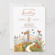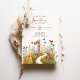 Invite a sus invitados a una alegre celebración con nuestra invitación floral de primer cumpleaños. Los deslumbramientos delanteros con un jardín vívido en el que los números florecen en la vida, creados a partir de un rico tapiz de florales en vibrantes tonos de caléndulas, mandarina, fucsia y azul celeste, ambientados en un fondo blanco puro. Las mariposas fluidas en tonos ámbar y cobalto le dan un encanto al lugar. La parte trasera de la invitación incluye líneas limpias y elegantes para los detalles del evento, contrastadas con el animado número de flores, prometiendo un día tan luminoso y alegre como el prado de flores silvestres que inspiró este diseño.