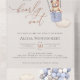 ¡Podemos esperar! Grabado de caligrafía moderno All In One con un tipo de letra serif clásico. Personalizable de cualquier color. Mantenga el diseño tal y como está, o lo personaliza agregando sus gráficos y ilustraciones. Simplemente escriba a mano las direcciones de los invitados en la parte posterior de la invitación doblada o compre los pegatinas de las etiquetas de direcciones de los invitados coordinadores (se venden por separado). Este oso pequeño espera al gran fiesta, sentado en un globo de aire caliente. Personalice esta bonita invitación de Bear Baby Shower con los detalles de su ducha de bebé de forma fácil y rápida, pulse el botón personalizar para reorganizar más y formatear el estilo y la ubicación del texto.