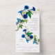 Esta invitación de boda antigua todo en uno es perfecta para bodas al aire libre. El diseño inspirado en el jardín presenta ilustraciones antiguas de hermosas enredaderas de la mañana azules entrelazadas en exuberantes vides verdes. El elegante diseño vintage incluye tanto la invitación de boda como una tarjeta de respuesta desmontable. Ofrecemos papelería de boda a juego en nuestra colección de bodas botánicas antiguas.