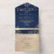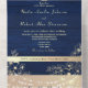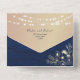 Establece el tono para tu celebración romántica con esta invitación de boda todo en uno en azul marino rústico. Diseñada con luces de cuerda brillantes, delicados acentos florales dorados y caligrafía elegante, incluye una tarjeta de RSVP incorporada y sobre coordinado. Ideal para bodas de otoño o invierno, lugares de granero o ceremonias nocturnas acogedoras.