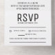 Estos personalizables Minimalistas Todos en una boda Invitaciones incluyen una tarjeta RSVP. Simplemente agregue 2 sellos, escriba la dirección de su invitado en la parte delantera y envíe esta magnífica invitación minimalista de boda a su familia y amigos. Personalizable completo con tus detalles, añade/cambia el color de fondo, el texto, etc fácilmente.