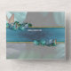 La naturaleza brota en la nueva colección Butterfly of Paradise. Impresionante salpicadura tropical en azul, turquesa y hojas azul-verde sobre un patrón negro texturado con coloridas mariposas diseño para la pareja boda.