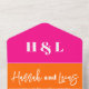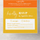 Esta es una invitación audaz, moderna, en una sola boda, con un hermoso tipo de letra caligráfica y antecedentes calientes rosa, naranja y amarillo. Todos los colores son editables. // Para encontrar diseños coincidentes, busque "FALLON" en la tienda Sinceramente de Nicole Zazzle. * Si te gusta este diseño pero no lo ves disponible para algo que estás buscando, por favor contacta conmigo en cualquier momento :)