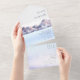 Esta invitación "todo en uno" de Winter Mountain es justo lo que usted ha estado buscando para completar su sencillo y rústico boda. Diseñado con una acuarela color pastel rosa y azul que se mezcla con la marina y los tonos azules, todo ello refleja perfectamente una velada natural. ¡Seguro que reúne tu minimalista aventura de colorado de una manera hermosa! ¡Manténgalo tal como está, o elige personalizarlo con tus fotos! También puede consultar otros elementos de esta colección para reunir a todo su boda.