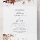 Las elegantes invitaciones florales para bodas todo en uno de otoño son muy modernas y bonitas. El elegante diseño floral incluye una invitación a la boda y una tarjeta RSVP con dirección propia que los huéspedes pueden enviarle por correo electrónico. Todos los aspectos de este diseño se pueden editar (fuente, tamaño de texto o acentos florales movidos/eliminados) para adaptarlos a sus necesidades. Por favor, contáctame si necesitas ayuda con este diseño.