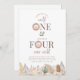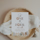 Una plantilla de invitación de cumpleaños conjunta para 1er y 4to cumpleaños con caras de león en acuarela y hojas de safari de tonos neutros en la parte inferior. ¡Perfecto para tu fiesta de cumpleaños temática de safari 'Wild One' y 'Four Ever Wild'!