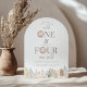 Una plantilla de invitación de cumpleaños conjunta para 1er y 4to cumpleaños con caras de león en acuarela y hojas de safari de tonos neutros a lo largo de la parte inferior. ¡Perfecto para tu fiesta de cumpleaños temática de safari 'Wild One' y 'Four Ever Wild'!
