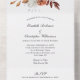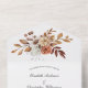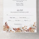 Un hermoso diseño floral con marrones, melocotón y óxido en una sola invitación a la boda. Sus huéspedes pueden sacar la tarjeta RSVP y enviarla de vuelta. Todos los campos son editables.