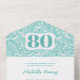 ● Todo en una elegante invitación por el 80 aniversario. Tradicional y también moderna. Este diseño sólo se ajusta a la edad de 2 dígitos. Si quieres usar este diseño para la edad de 3 dígitos, por favor no dudes en contactarme. ・ Esto todo en una sola invitación hace que la preparación de la invitación a la fiesta sea más fácil. En esta tarjeta doblada, hay una postal de invitación y RSVP. No necesitas envolver la tarjeta RSVP y la invitación. Todo lo que necesitas hacer es doblar, luego sellar la solapa trasera con los tres pegatinas claros incluidos, poner sellado y enviar el correo. Cuando sus invitados reciban la invitación de su personalizado, ¡simplemente le quitan la tarjeta RSVP y la envían de vuelta por correo! ・ Si desea editar más, haga clic en "Editar usando la herramienta de diseño" ¡Avísame si tiene alguna pregunta!