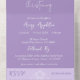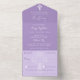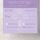 Una lila en una sola invitación a bautizar con una cruz floral blanca. Personalice con el nombre, los lugares, los detalles de la dirección y cambie el bautizo al bautismo si lo prefiere. Parte de la Colección Floral Cross Christening.