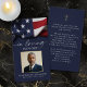 Keep the memory of a loved one close with this personalized patriotic prayer card featuring a cherished photo of them framed in faux metallic gold foil, the sentiment IN LOVING MEMORY, name and dates with an image of an American flag on the front and an editable prayer accented with a simple cross on the back in navy blue. With its simple yet elegant classic design and elegant script typography, it makes a meaningful keepsake to share at a funeral, memorial service or Celebration of Life and offers comfort and a lasting tribute for family and friends. Its small and portable size of 3.5x2" (wallet-sized) makes it convenient for loved ones to carry it with them as a reminder of your loved one’s life and spirit. Personalization makes each card unique.