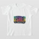 La camiseta muestra el texto "Usher the Unrivaled" en un gradiente negrita y multicolor. Cada palabra pasa suavemente a la siguiente, creando un diseño vibrante y llamativo.