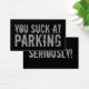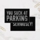 Usted Se Suck En La Tarjeta Negra De Negocios De Estacionamiento. Cada vez que te quedes en el estacionamiento, necesitas tener esta gran tarjeta, porque la gente que no es educada debe saber qué otros piensan de ellos. La verdad es siempre mejor que una dulce mentira.