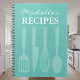 Utensilios de cocina personalizados libro de recetas cuaderno de espiral. Guarde y anote sus recetas secretas. Elegante plantilla de tipografía de script para el nombre. fondo de color verde azulado/turquesa azul o personalizado. Añade tu propio nombre. Whisky con cuchillo de espátula y diseño de cuchara. Idea de horneado y regalo de cocina para la madre, el padre, la madre, la esposa, la tía, la hermana, la abuela, la hija, etc. La escuela de moda y los suministros de oficina para el hogar o el trabajo.