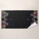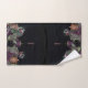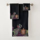 Este conjunto de toallas de baño de fondo negro es una estampada de vino, uvas y velas, y con otra decoración se podría hacer un baño muy coordinado y de estilo.