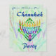 El menorah pintado colorido con verde abstracto modeló el fondo. Diseño de Chanukah. Invitaciones de encargo - apenas añada su propia información en los espacios proporcionados.