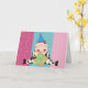 Carta de felicitación de cumpleaños de vaca dulce y colorida con una vaca en un gorra fiesta sosteniendo un regalo de cumpleaños. Puede personalizar esta tarjeta de cumpleaños de vaca agregando su propio texto antes de hacer el pedido.