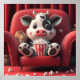 Vaca en Sofá Rojo Comiendo Palomitas de Maíz Arte