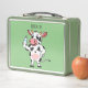 Esta vaca feliz tiene una botella de bebés. Dibujado en un divertido estilo personalizado.