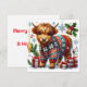 Envía vibraciones acogedoras de vacaciones con esta adorable tarjeta plana que muestra una vaca Highlandia con un jersey festivo de Navidad. Rodeada de regalos y acebo, esta tarjeta es la forma perfecta de desear a tus seres queridos una Navidad cálida y alegre.
