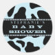 Que todos sepan que el pequeño y dulce bebé que está en camino va a ser un vaquero con este divertido piel de vaca imprimir pegatina de ducha de bebé en azul negro y bebé. Perfecto para un estilo rústico o para una ducha de bebé con temática de vaca.