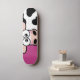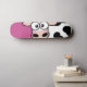 Cubierta de patinaje para vacas rugosas. El diseño presenta una bovina blanca y negra en un fondo rosa. Perfecto para patinadores chicas. Diseño © Lisa Marie Robinson