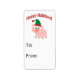 ¡Vacaciones de Hoggy! Etiqueta de regalo que muestra a un lindo cerdo con un gorra elfo de Navidades verdes y rojos.