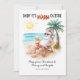 Envía cálidos deseos de vacaciones desde la playa con esta divertida tarjeta de Navidad "Baby It's Warm Outside" que presenta a Santa en vacaciones. Santa se relaja con pantalones cortos hawaianos bajo una palmera decorada con adornos, disfrutando de una cerveza y un día soleado junto al océano. El saludo dice "Que tu Navidad sea alegre y brillante" y se puede personalizar con tu propio mensaje y nombre para un toque personalizado. El reverso presenta un fondo turquesa alegre y playero, que añade un toque de alegría tropical. ¡Perfecto para cualquiera que celebre la Navidad en un clima cálido o que sueñe con una escapada navideña costera! Arte de KL Stock