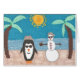 Un pingüino y unas vacaciones de muñecos de nieve en una playa...