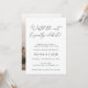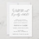 Invitación de recepción de boda con "vale la pena esperar para finalmente celebrar" en una elegante letra negra. Personalice con su foto en el reverso o elimine si no se desea ninguna foto.