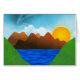 Escena de ilustraciones en el valle del sol con montañas y un lago. Disponible en diversos regalos y productos.