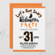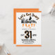ilustracion de halloween moderno y creativo de Guay con cuervos negros. El texto es todo personalizable, incluyendo - Seamos aterradores. Blanco negro con acentos de rayas naranjas.