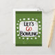 "Let's Go Bowling" es un lindo diseño de texto con una forma de acento blanco rodeado de puntos caprichosos de textura blanca.