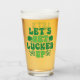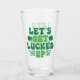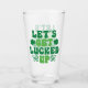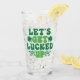 Este vaso de agua tiene un diseño lúdico y festivo con la frase "VEAMOS AFORTUNADOS" que se muestra de forma destacada en letras negrita y verdes. El texto está adornado con dos iconos de shamrock que le dan un toque de encanto irlandés. El diseño también incluye elementos decorativos como pequeñas formas de hoja alrededor de la palabra "UP", que realzan el ambiente de celebración general. Perfecto para el Día de San Patricio o cualquier reunión divertida, este vaso seguramente traerá una sonrisa a la cara de cualquiera.