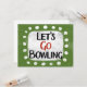 "Let's Go Bowling" es un lindo diseño de texto con una forma de acento blanco rodeado de puntos caprichosos de textura blanca.