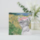 Hermosa y artística compilación presenta el estadio The Wheat Field de Claude Monet como fondo con retrato de gatos grises con una cubierta de corona floral de acuarela.