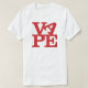 La palabra VAPE en letras rojas. Las letras VA están en el top (la A se biselan de lado) y el PE está en la parte inferior. Un homenaje al arte pop, dedicado a todos los vapers.